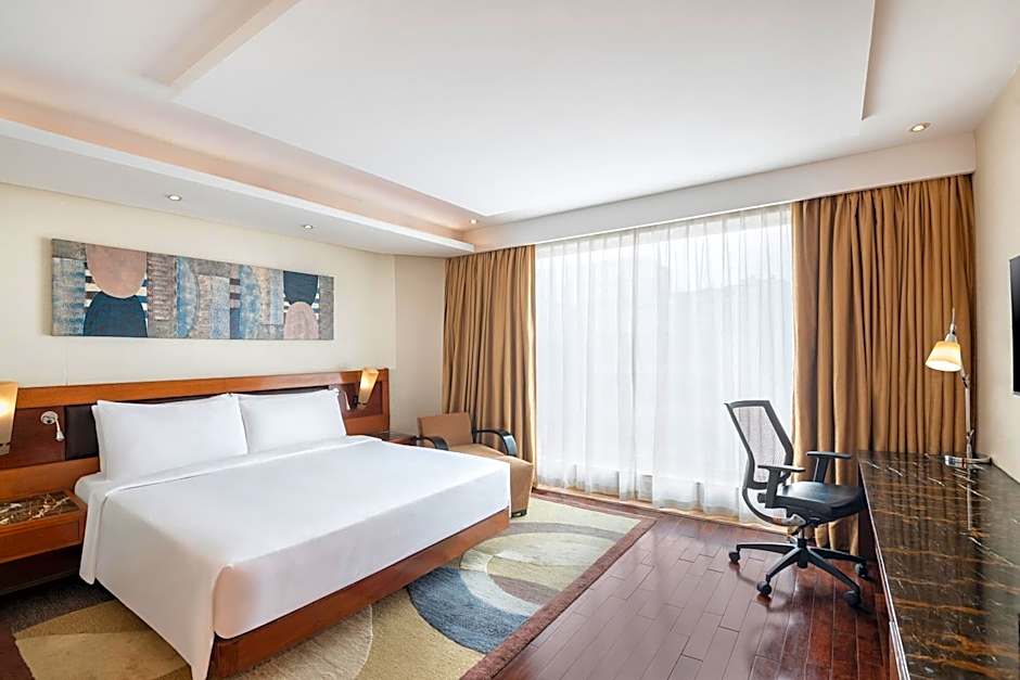 This room features city or pool views. A flat-screen TV with satellite channels is provided.